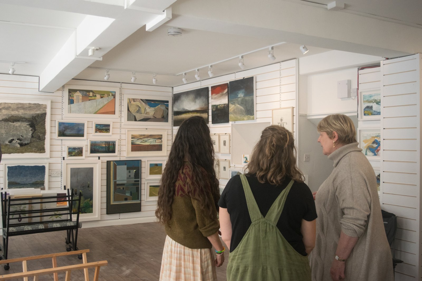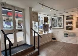 There are two steps with a handrail down from the main entrance to the gallery. Lighting is good. There is step free access to the lower space available for community events and workshops.