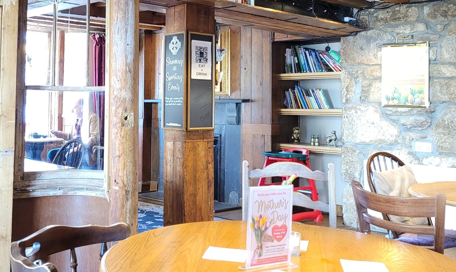 The entrance is on a flat pavement, there is level access into the building. Once inside there is a main bar which is level access with plenty of room between tables and at the bar area. To the left is a restaurant area which has a small step (ramp available)