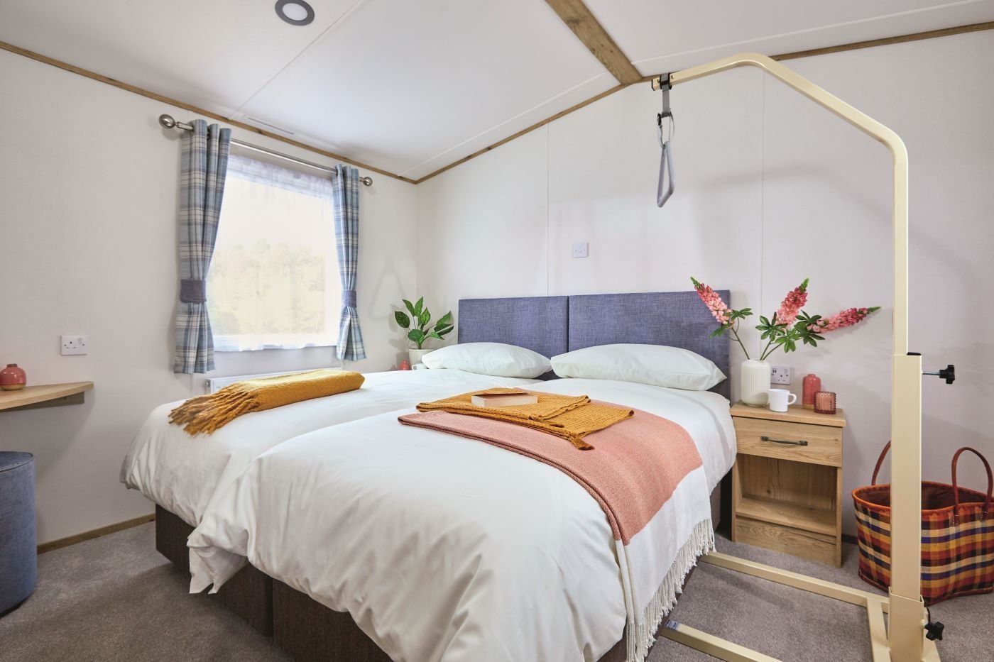 Wooda Farm Holiday Park has 55 Holiday Homes, one of which, Derwent, is a two bedroom holiday home that has been specially designed for those with limited mobility. Ramp access through the lounge door leads to a spacious interior that is fully adapted for wheelchair users. All rooms are fully accessible for wheelchairs. Parking is available alongside all of our accommodation – there are tarmacked parking bays. All our other Holiday Homes are accessible by 1 – 3 steps. The Holiday Homes are most suited to those with reasonable mobility.